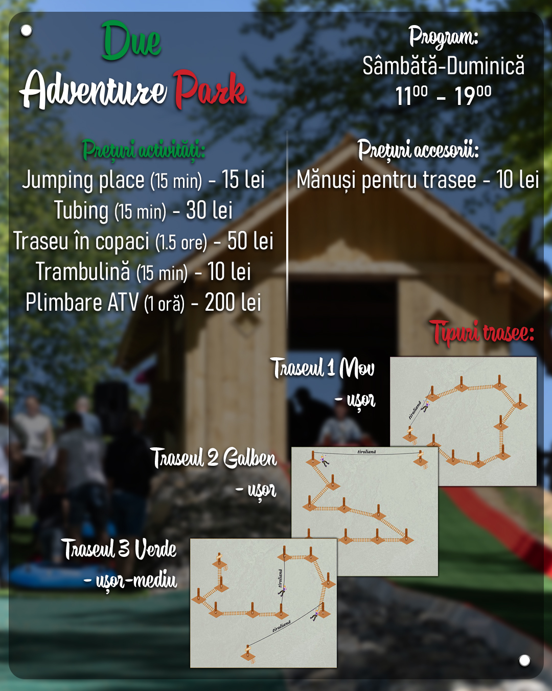 Vacanța voastră va fi mai antrenantă și mai dinamică și cu siguranță veți aprecia stropul de adrenalină pe care vi-l aducem odată cu…Adventure Park! Doar aici distracția și aventura merg mână în mână!