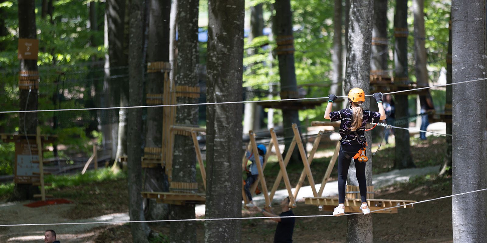 DISTRACȚIE ÎN AER LIBERÎn fiecare weekend, sâmbăta și duminica, sunteți așteptați, între orele 11:00 – 19:00, la cea mai tare distracție în aer liber! De la cei mai mici membri ai familiei până la adulți, cu toții veți aprecia orele petrecute împreună și veți aștepta apoi cu nerăbdare o nouă escapadă în Adventure Park!